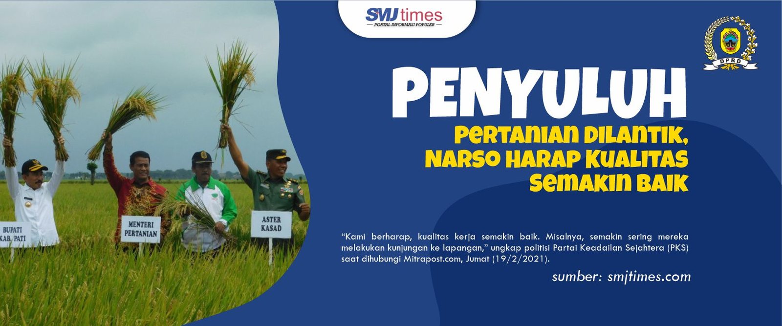 Pati, SMJTimes.com – Dewan Perwakilan Rakyat Daerah (DPRD) Kabupaten Pati berharap dilantiknya pejabat penyuluh pertanian Dispertan akan meningkatkan kualitas kinerja mereka. Hal ini diungkapkan oleh Narso, ia mengungkapkan bahwa dilantiknya mereka akan membuat resolusi pegawai bisa lebih baik.